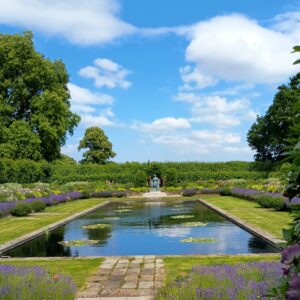 ロンドン西部、ハイド・パークと隣接する王立公園のひとつ。広大な芝生と樹木に囲まれた静かな空間は、街の喧騒を忘れさせる落ち着いた雰囲気が魅力です。公園北端にあるイタリアン・ガーデンズ(Italian Gardens)はヴィクトリア朝時代に造られた水の庭園で、クラシックな石造りの噴水や優雅な花壇が配置され、ロマンチックな雰囲気が漂います。また、故ダイアナ妃生誕60周年を記念して造られたダイアナ妃記念ガーデン(Princess Diana Memorial Garden)には、彼女が愛した白いバラやナチュラルな草花が咲き誇り、中央にダイアナ妃の彫刻が立っています。ほかにも、ケンジントン宮殿やピーター・パン像、子どもたちに人気のダイアナ記念遊び場など多くの市民や観光客に親しまれています。